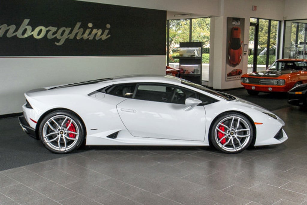 This is a smoke free Carfax Certified 2015 Lamborghini Huracan LP610-4 coupe, equipped with a 5.2L 610HP V10 engine and a 7-speed LDF dual-clutch transmission and AWD. This car is finished in a beautiful Bianco Icarus (Metallic White) exterior color and Nero Ade (Black) leather with Alcantara (Fabric) seat and door inserts, dash and headliner, along with Red contrast stitching throughout.
