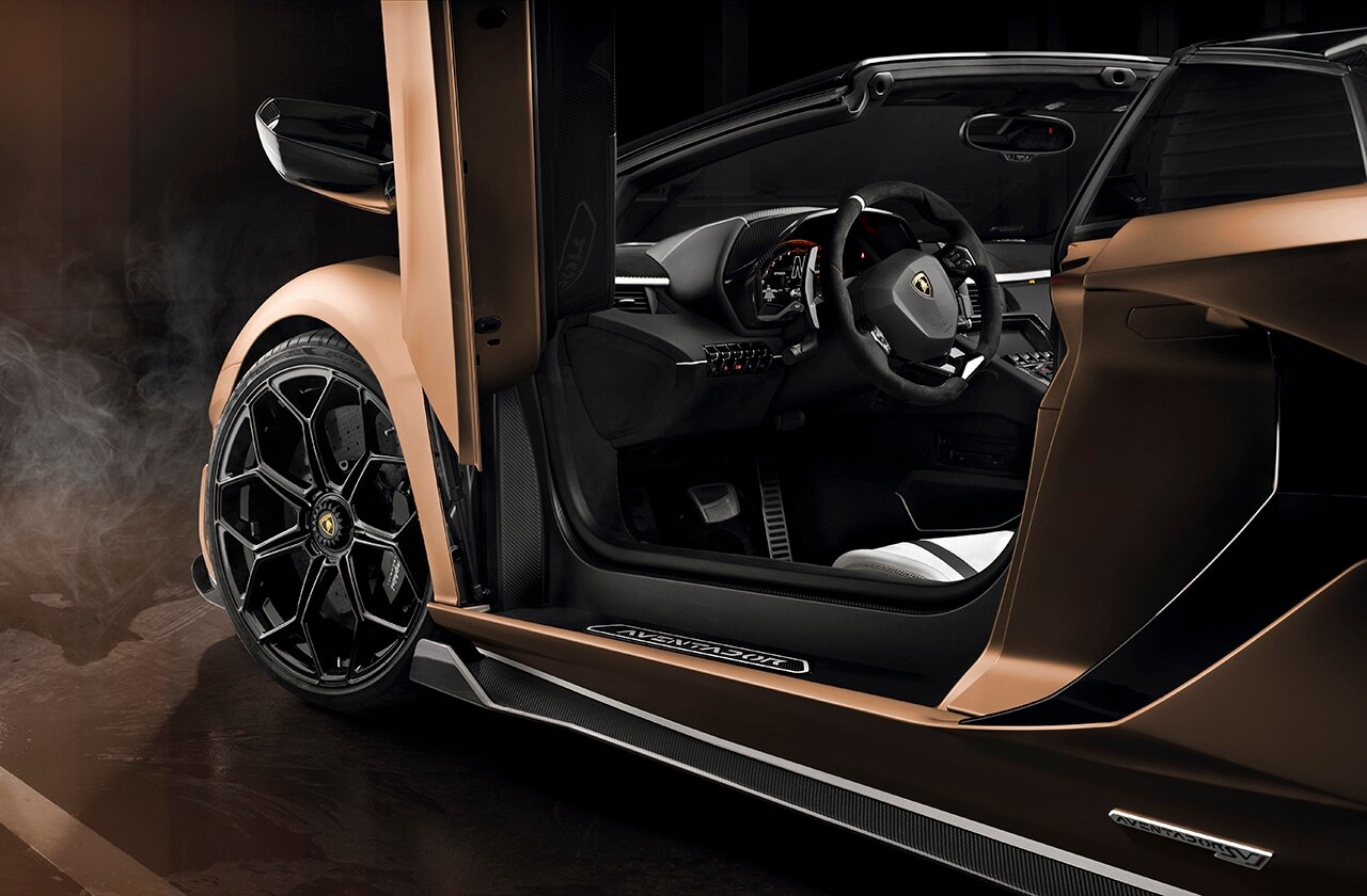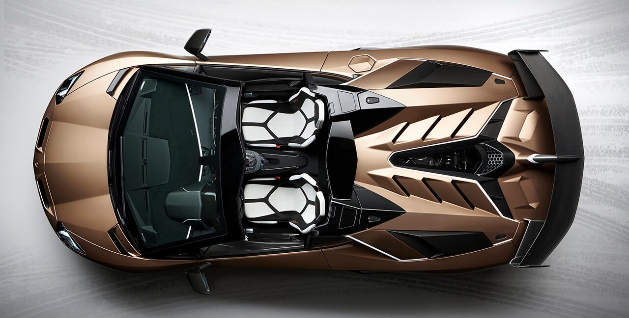 Sophistication, aggressiveness, lightness, and aeronautics-inspired aerodynamics. The beauty, power, and performance of the SVJ Roadster are guaranteed by ultra-light materials, such as carbon fiber, used for the body and the removable hardtop. The body features air intakes larger than any previous model, more extended side skirts, accentuated aerodynamic profiles, and a lighter and higher-mounted exhaust system.Â