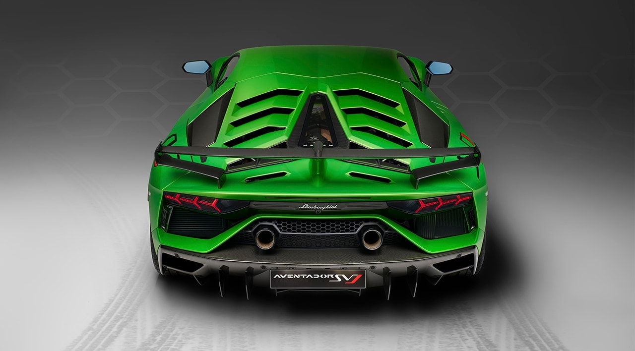 The rear wing of the SVJ has been designed for best aerodynamic efficiency, based on a new air foil; an optimized ALA 2.0 system; and side winglets to reduce turbulence while providing high downforce on the straight as well as in high speed corners. Â