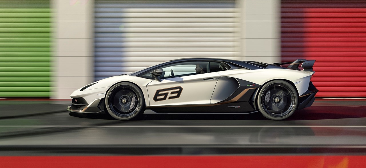 A special edition, named SVJ 63, is exclusively unveiled on the concept lawn at the Pebble Beach Concours d'Elegance. It pays homage to Lamborghini's founding year of 1963: produced in a unique configuration, it demonstrates the rich use of carbon fiber and is made in an additional limited number of just 63. Â