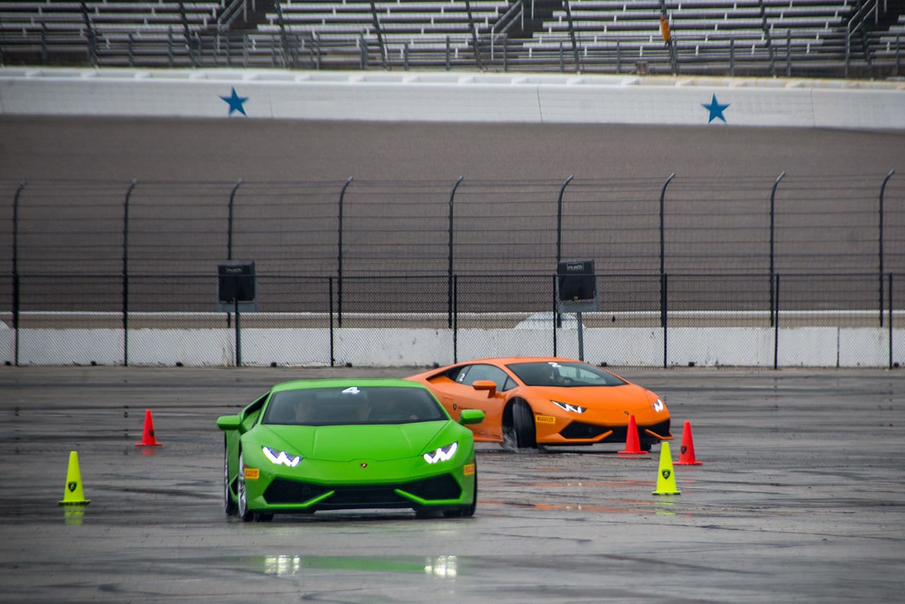 Lamborghini factory-trained instructors taught exercises including controlled slides, timed slalom, and proper track lapping. In true Texas fashion, the weather was unpredictable for both days, allowing the Lamborghini's to further demonstrate the amazing handling, traction, and performance of the Huracán and Aventador.