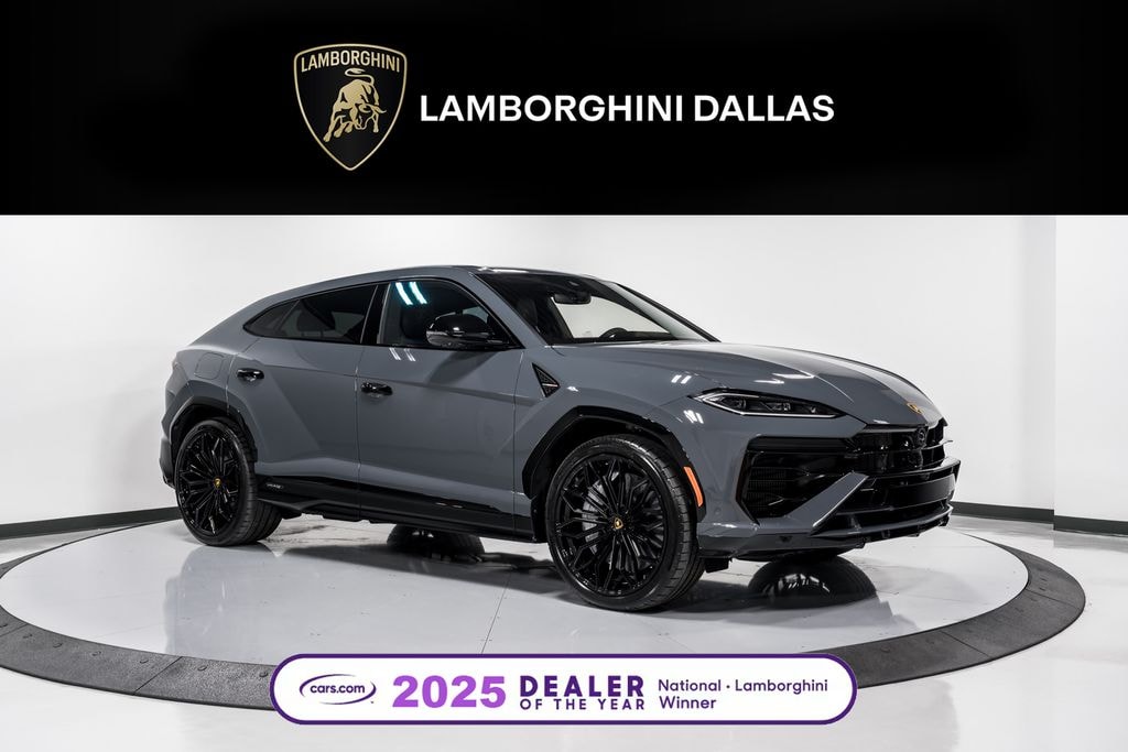 This is a BRAND NEW 2025 Lamborghini Urus SE equipped with a 4.0L/789-hp V-8 Bi-Turbo, plus one 192-hp electric motor; combined 789-hp and 701 lb-ft engine, an 8-speed Automatic (auto & paddle shift) transmission with AWD and 4 wheel steering system. This Urus SE is finished in a gorgeous Grigio Telesto (Gray) exterior color and Nero Ade (Black) full leather interior along with contrast stitching throughout.