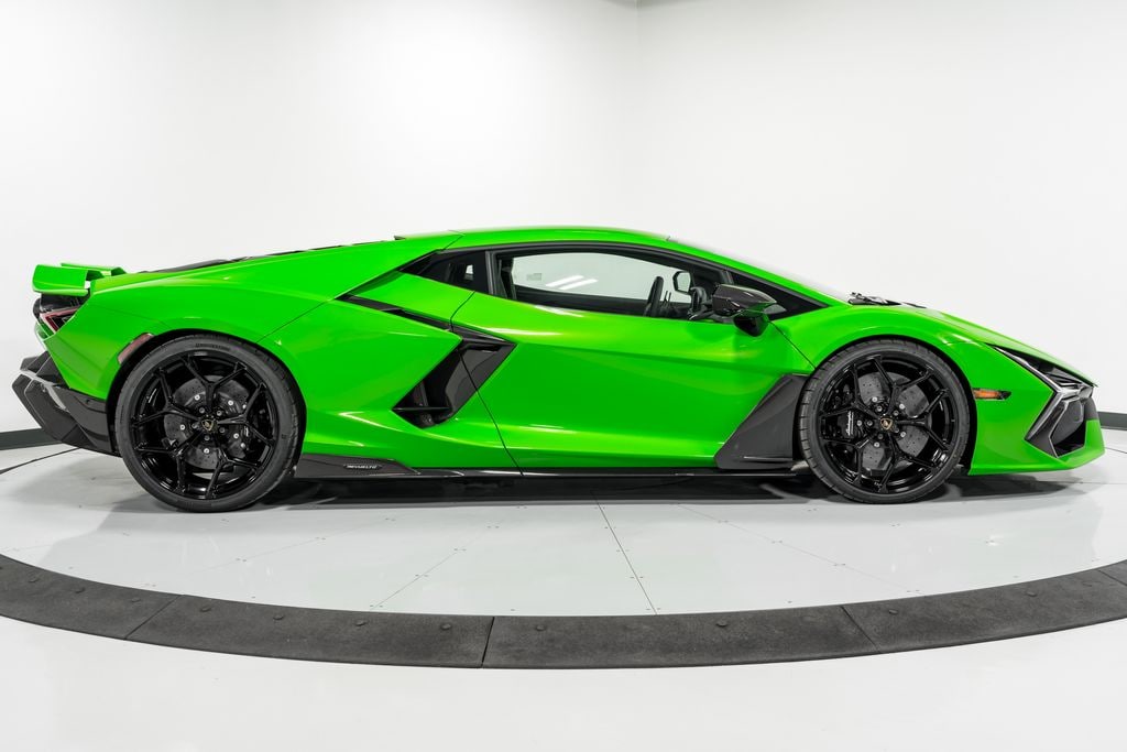 This is a Brand New 2026 Lamborghini Revuelto Coupe equipped with a 6.5L/814-hp/535-lb-ft DOHC 48-valve V-12, plus two 148-hp/258-lb-ft electric motor and one 148-hp, 111 lb-ft electric motor; combined 1001 hp and 739 lb-ft engine, an 8-speed Dual Clutch (auto & paddle shift) transmission with AWD and 4 wheel steering system. This Revuelto is finished in an elegant Verde Egeria (Pearl Green) exterior color and Nero Ade (Black) full leather interior along with contrast stitching throughout.