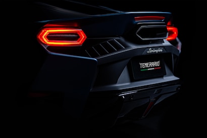 Temerario is a milestone in Lamborghini design, combining an unmistakable character with lines that pay tribute to iconic models of the brand. The exterior is characterized by a new stylistic feature, the signature hexagon-shaped daytime running lights, which recall one of Lamborghini's traditional geometric shapes with a futuristic context. Also unmistakable is the exposed engine, the heart of the vehicle, framed by a new spoiler that combines function and beauty and plays a fundamental role in aerodynamic efficiency.