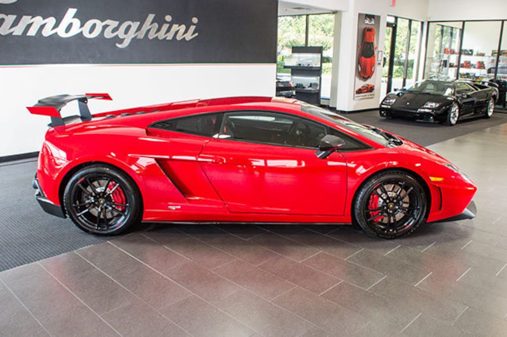 This is a smoke free carfax certified 2013 Lamborghini Gallardo Super-Trofeo Stradale Cpe equipped with a 5.2L 570HP V10 engine with a 6-speed E-Gear (paddle shift & auto) transmission and AWD. This car is finished in a RARE Rosso Mars (Red) exterior color with Black and Red Alcantara interior along with Carbon Fiber trim throughout.