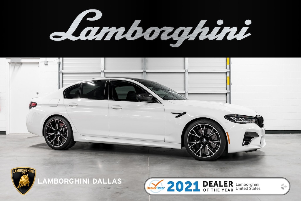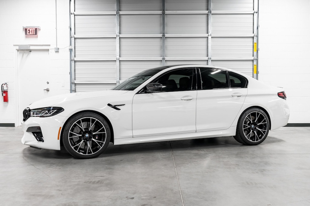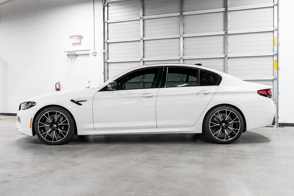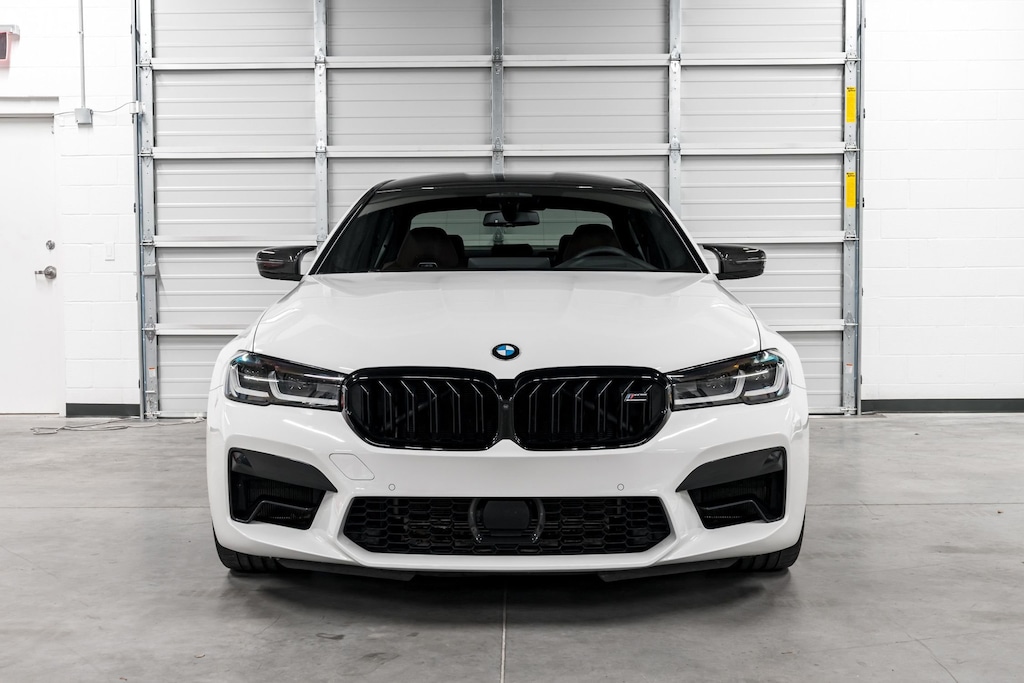 This is a smoke free Carfax certified 2021 BMW M5 Competition equipped with a 4.4L Twin Turbo 617HP V8 engine and a 8-speed automatic with sport shift transmission. This car is finished in a gorgeous Alpine White exterior color and Tarfufo Individual Full Merino leather upholstery interior with Aluminum Dark Carbon Structure Interior Trim.