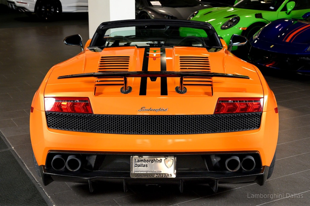 This is a smoke free Carfax certified 2012 Lamborghini Gallardo Performante LP 570-4 equipped with a 5.2L 570HP V10 engine and a 6-speed E-Gear (Paddle shift & Auto) transmission with AWD. This car is finished in a beautiful Arancio Borealis (Pearl Orange) exterior color and Nero Cosmus (Black) Alcantara interior along with contrast stitching and Carbon Fiber trim throughout.