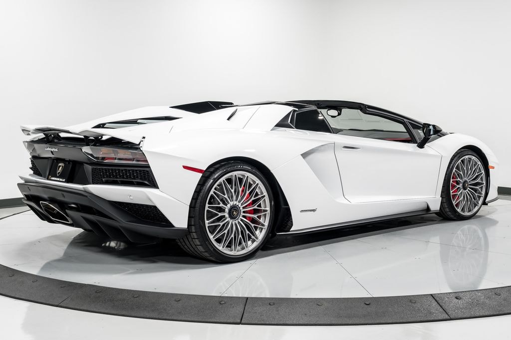 This is a smoke free Carfax certified 2018 Lamborghini Aventador Roadster equipped with a 6.5 730HP and 507 lb-ft of torque V12 engine and a 7-speed ISR (auto & paddle shift) transmission with AWD and AWS. This car is finished in Bianco Isi (Gloss White) exterior color with Nero Ade (Black) leather interior along with contrast stitching.