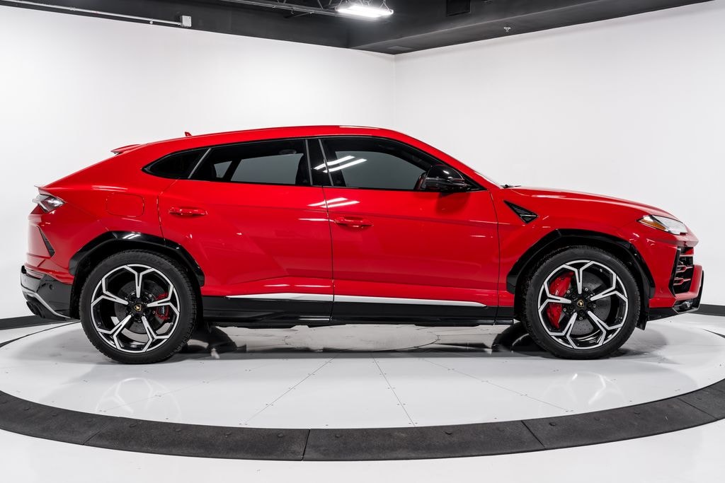 This is a smoke free Carfax certified 2019 Lamborghini Urus SUV, equipped with a 4.0L 650HP V8 bi-turbo engine and a 8-speed automatic transmission with AWD and 4-wheel-steering. This Urus SUV is finished in a gorgeous Rosso Anteros (Red) exterior with Nero Ade (Black) Rosso (Red) full leather interior along with contrast stitching.
