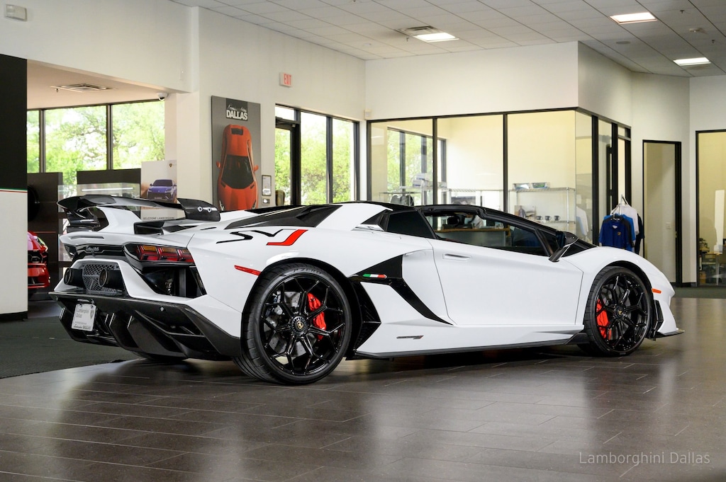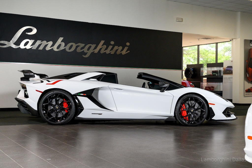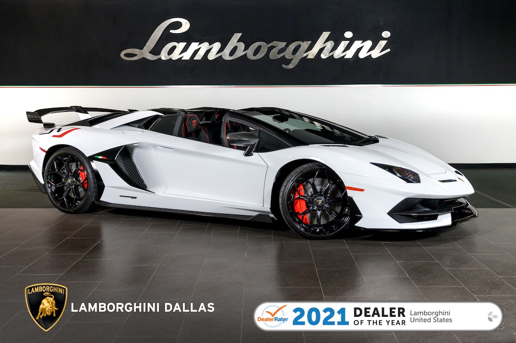 This is a 2020 Lamborghini Aventador SVJ Roadster equipped with a 6.5L 770HP V12 engine, a 7-speed ISR (auto & paddle shift) transmission with AWD, 4 wheel steering system, and an active aerodynamics ALA system.