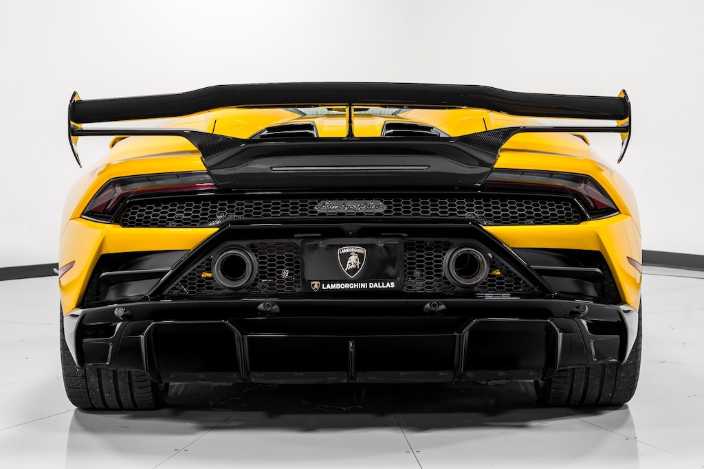 This is a smoke free Carfax certified 2023 Lamborghini Huracan Evo Spyder RWD equipped with a 610HP 5.2L, V10 engine and a 7-speed LDF dual clutch (auto & paddle shift) transmission with RWD. This car is finished in a beautiful Giallo Auge (Pearl Yellow) exterior color and Nero Ade (Black) and Giallo (Yellow) Leather interior along with contrast stitching throughout.