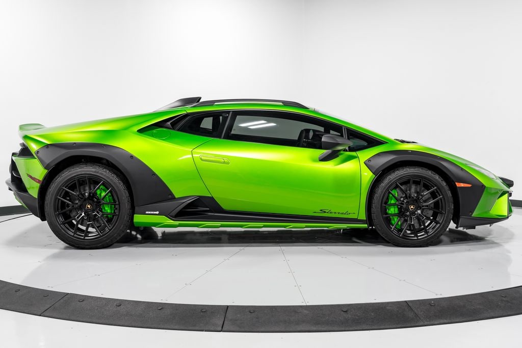 This is a 2024 Lamborghini Huracan Sterrato equipped with a 610HP 5.2L, V10 engine and a 7-speed LDF dual clutch (auto & paddle shift) transmission with AWD. This car is finished in an elegant Verde Selvans (Pearl Green) exterior color and Nero Ade (Black) Leather and Alcantara interior along with contrast stitching throughout.