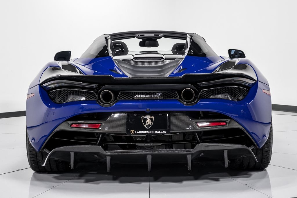 This is a smoke-free Carfax certified 2020 McLaren 720S Spider equipped with a 4.0L 710HP Twin Turbo V8 engine and a 7-speed dual-clutch automatic with sport shift transmission with RWD. This car is finished in a beautiful Aurora Blue exterior color with Black leather interior.