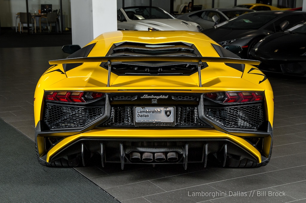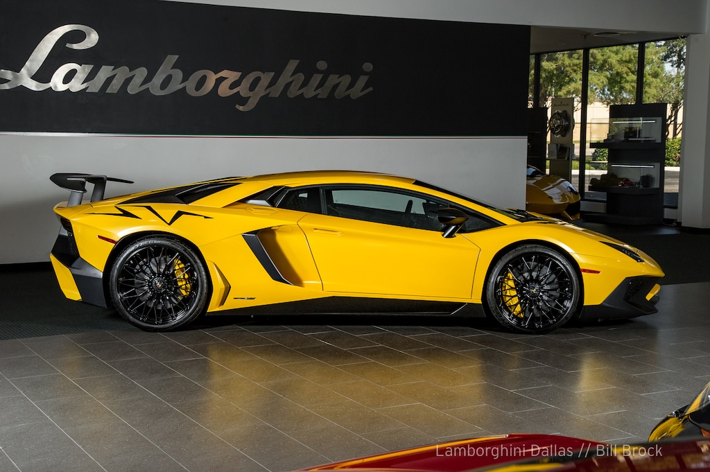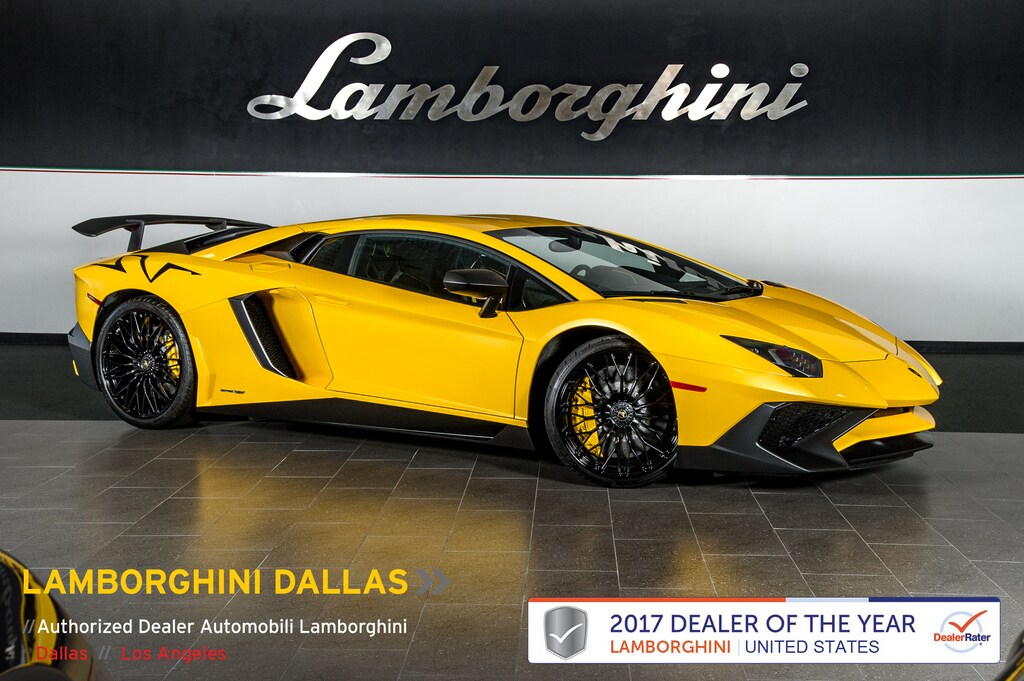 This is a smoke free Carfax certified 2015 Lamborghini Aventador LP750-4 "SV" edition equipped with a 6.5L 750HP V12 engine and a 7-speed ISR (auto & paddle shift) transmission with AWD. This car is finished in a beautiful New Giallo Orion (Pearl Yellow) exterior color and Nero Cosmus (Black) Alcantara interior along with Carbon Fiber trim, yellow constrast stitching throughout.