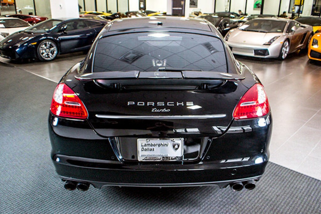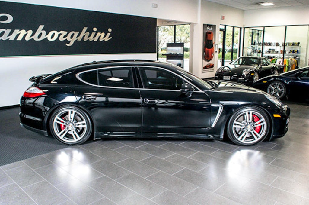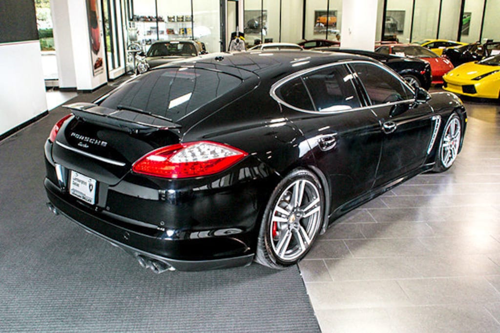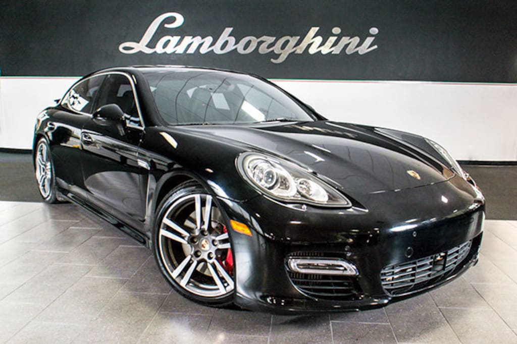 This is a smoke free Carfax certified 2010 Porsche Panamera Turbo sedan equipped with a 4.8L Twin Turbo 500HP V8 engine and a 7-speed automatic with sport shift transmission and AWD. This car is finished in a beautiful Metallic Black exterior and Black full leather interior along with rich wood trim throughout.
